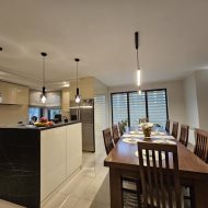 Wnętrze domu to prawdziwa perełka. Stonowane kolory ścian w połączeniu z meblami wysokiej klasy zapewniają harmonijne, a zarazem bardzo eleganckie wnętrze. Duże okna wpuszczają mnóstwo naturalnego światła co sprawia że dom staje się jeszcze bardziej przytulny.