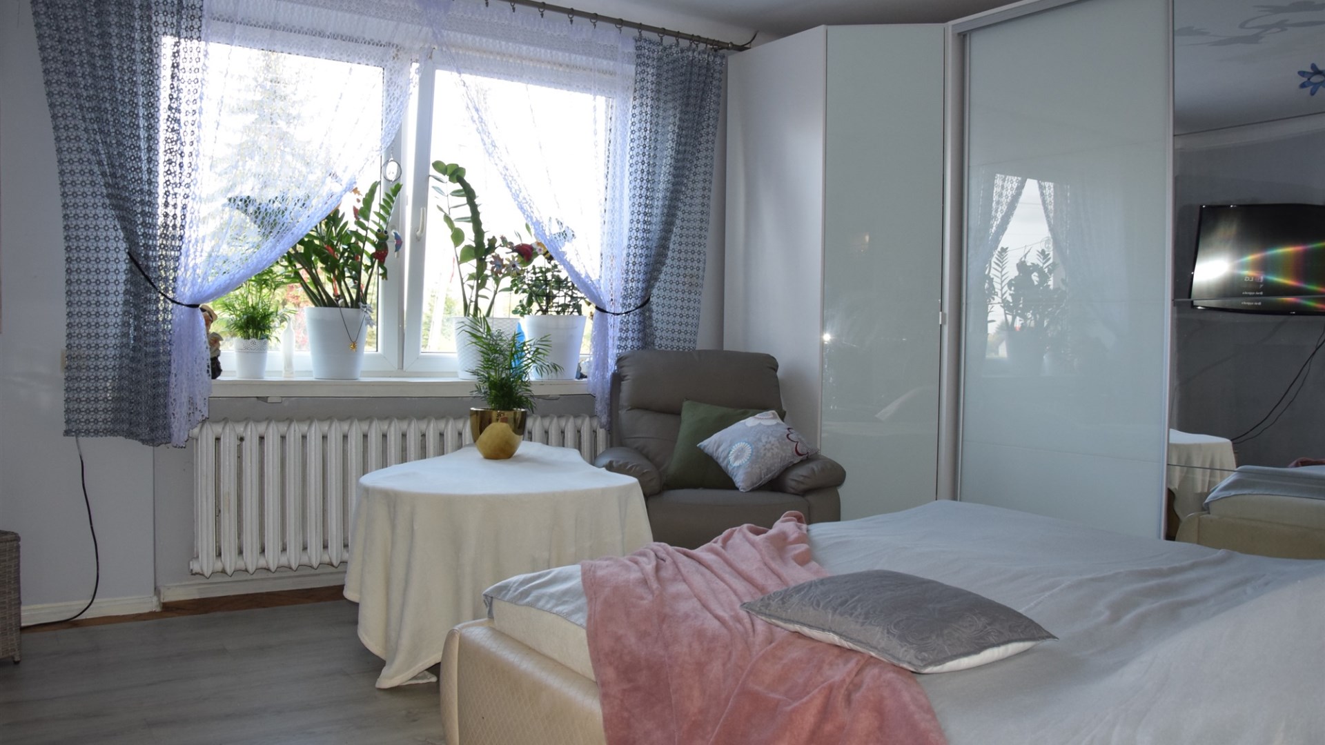 - dwóch niewielkich poki na poddaszu.